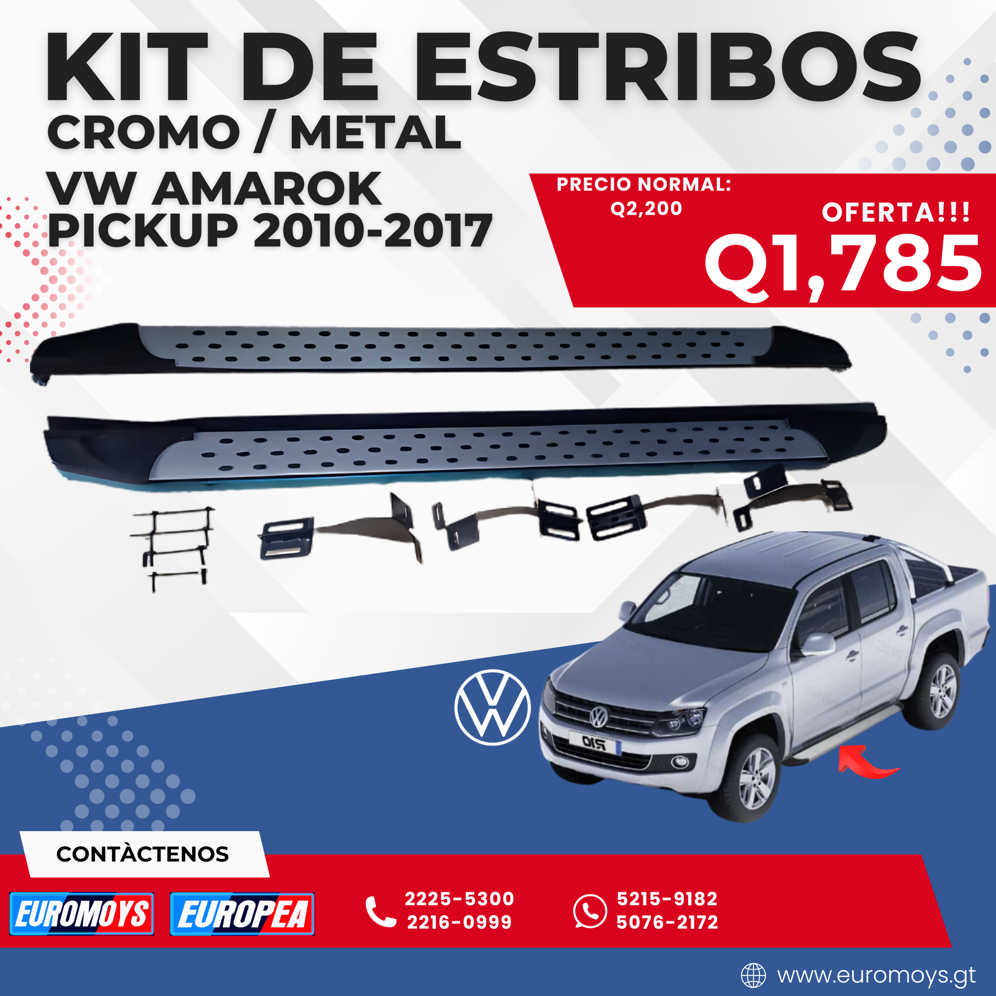 KIT DE ESTRIBOS CROMO-METAL ARA VOLKSWAGEN AMAROK PICKUP 2010-2017